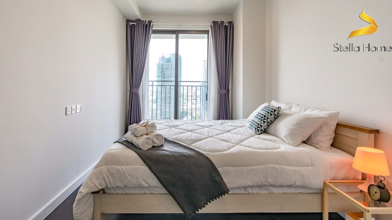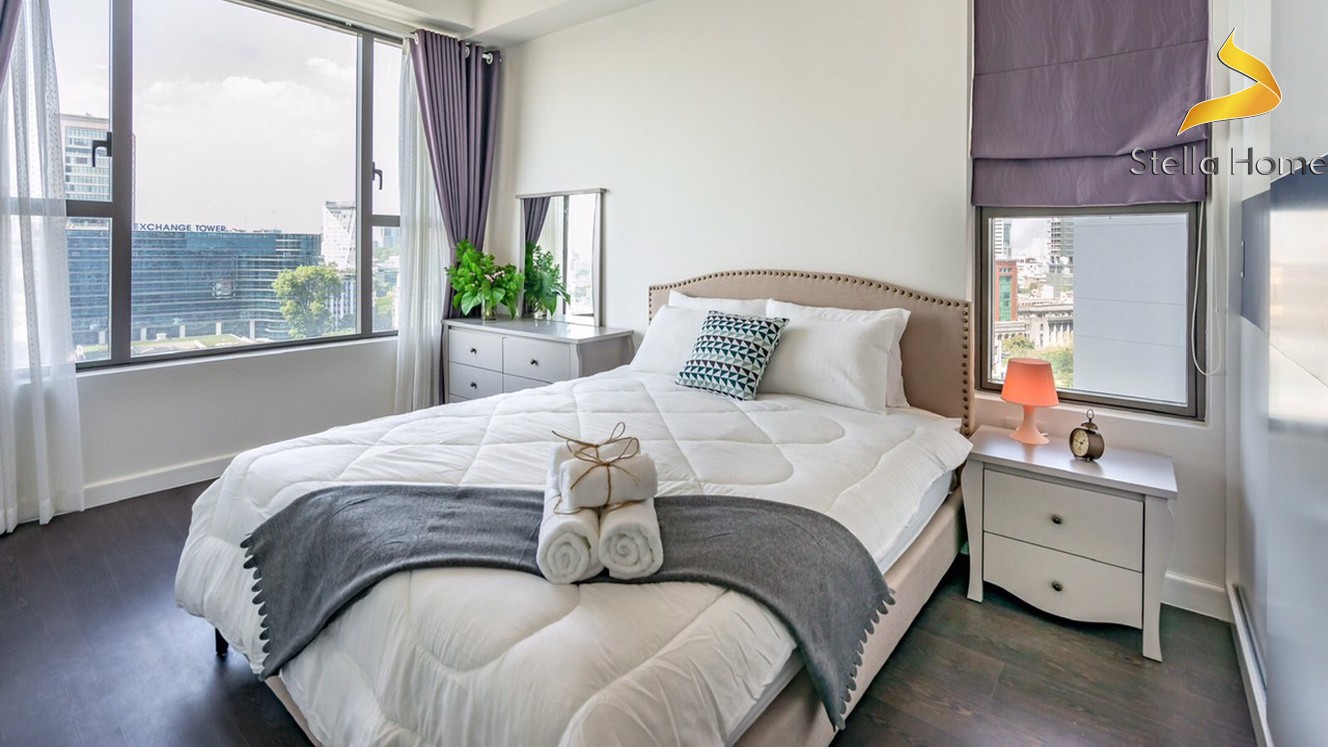 ?Căn hộ 3 phòng ngủ ở góc cho thuê trên tầng cao đối diện với trung tâm quận 1 và kênh Bến Nghé.